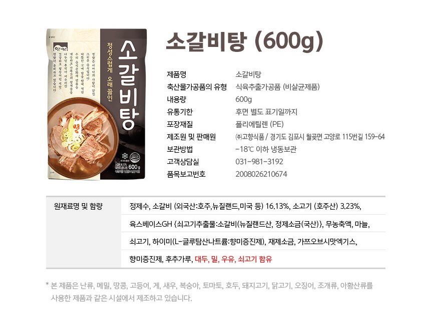 韓國 牛排骨湯 (即食料理湯包) 600g -冷藏