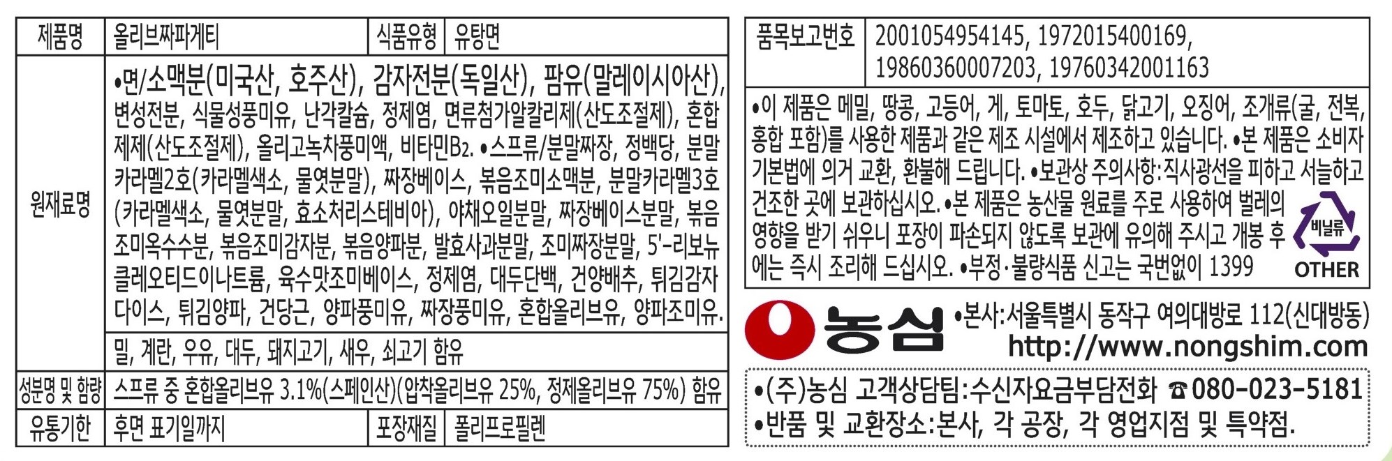 農心 原裝韓國版橄欖油炸醬麵140克x5包入