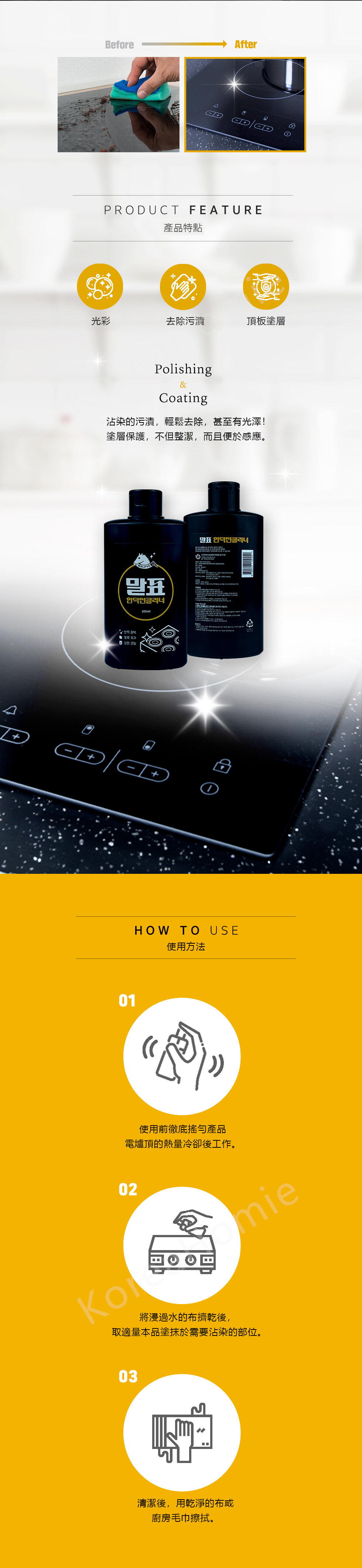 • 能有效去除電磁爐上的頑固油污,食物殘跡等徹底清除