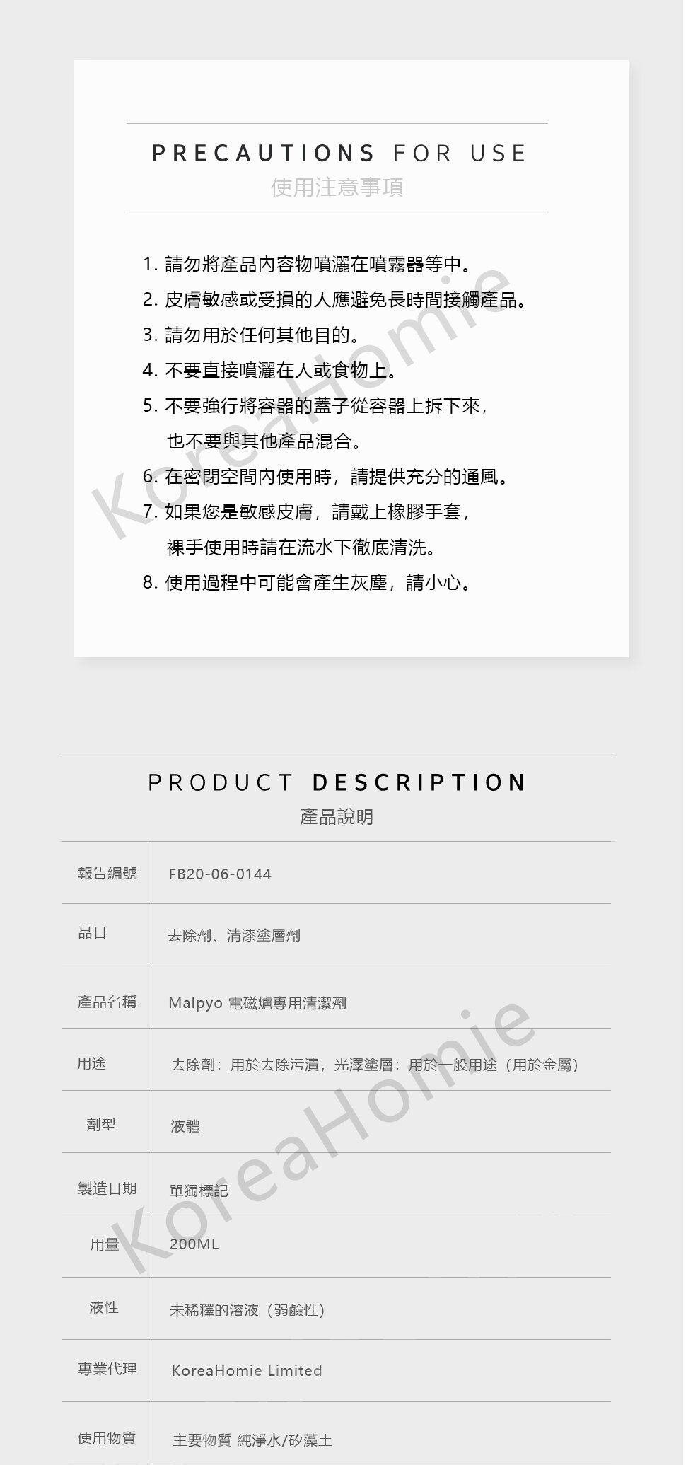 Malpyo - 韓國製電磁爐專用清潔劑 | 強力去油污 200ml